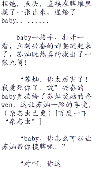 脸色羞红的baby也不回答,只是将脑袋埋进苏灿的怀抱里,好感度已经达到的baby早就对苏灿没有抵抗力了。
