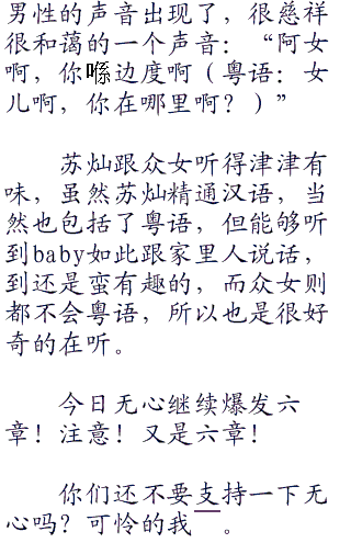 baby一回来就有些精神不佳,昨晚太累了,再加上又是第一次的她,长途奔波,所以显得有些疲惫,苏灿让baby去她的房间里继续休息,baby听话的点了点头