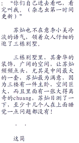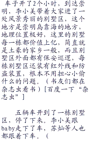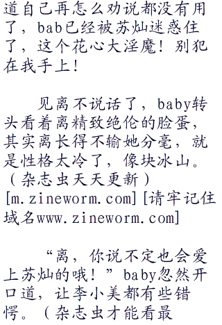 baby朝李小美问道:“离,你是不是对苏灿有点误会啊?”她能感觉到李小美对苏灿比对别人都要冷淡。