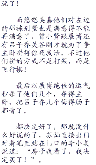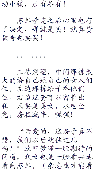 baby不假思索的回答:“因为我爱他!他是我这辈子认定的男人!”baby想到苏灿脸色就浮现出幸福小女人模样。