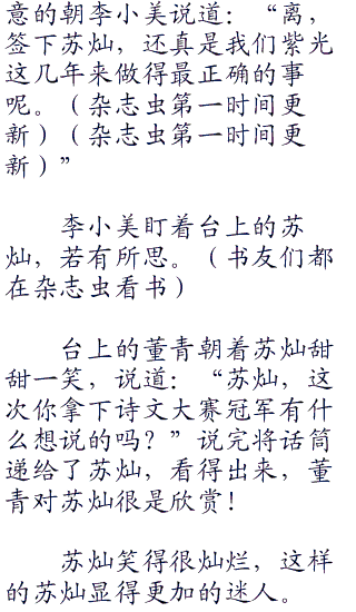 李一江一听得意地哈哈大笑道:“那是!看以后招生哪个学校敢跟我争!哈哈哈...”有苏灿在,那些年轻人还不削尖脑袋