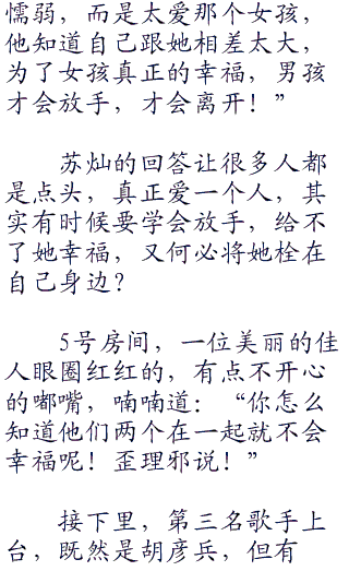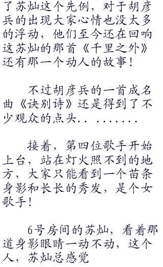 古句基再次站上了舞台,对着苏灿问道:“苏灿,你的这首歌是不是有一个故事在里面啊?我好像感受到这不单单是一首歌曲,更是一个美丽动人的故事!”