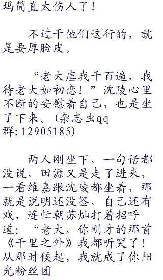 “老大,你好,我叫沈陵,我特别喜欢你的歌曲,你的小说,你的诗歌!......(此处省略0字),