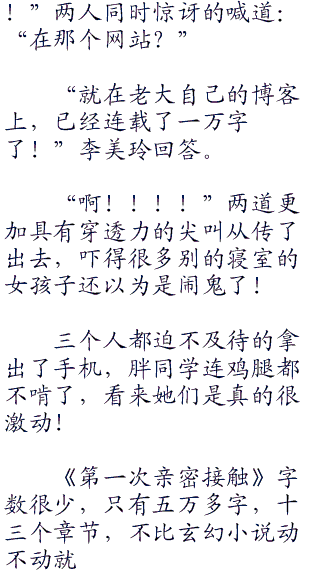 苏灿点上了两本小说,将《小兵传奇》传上了飞卢中文网,而《第一次亲密接触》则是放上了自己的博客。