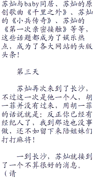 苏灿的小说再次风靡了整个小说界!紧接着《千里之外》苏灿再次为自己的名气狠狠的填了一把火!