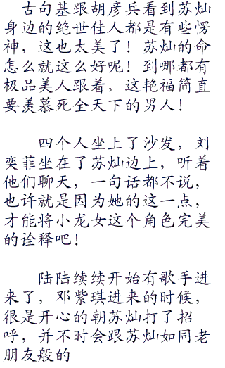 刘奕菲朝着他们礼貌的点头问好,便不再言语,其实她的性格真的有点像神雕侠侣里面的小龙女一般,不善言谈,不喜生人,淡然一笑,可泯苍生!