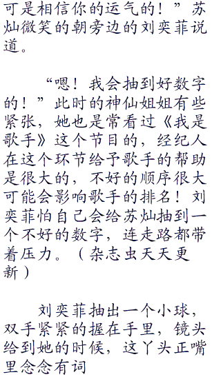 苏灿也是笑着跟他们谦虚的打着招呼,并向他们介绍自己的新搭档,也就是刘奕菲。