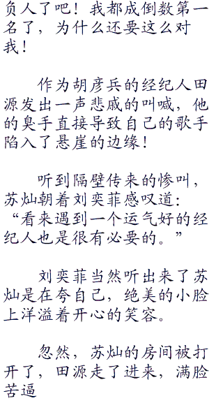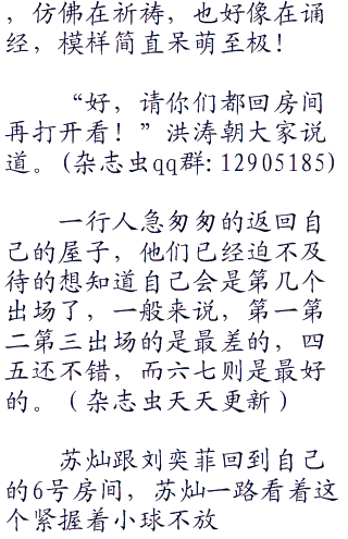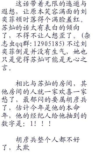 今天苏灿不是最后一个到的,苏灿跟刘奕菲进入休息室的时候,只有古句基跟胡彦兵在沙发上休息。