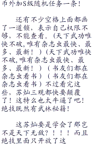 苏灿直接略过普通技能栏,要不是系统不允许,苏灿想直接将这普通技能栏拉进黑名单!