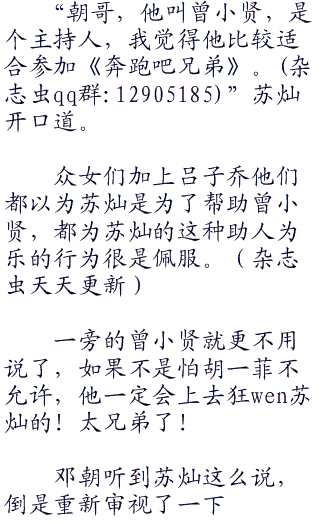 苏灿一听顿时一惊,《奔跑吧兄弟》在前世可是火爆异常,这档明星户外真人比赛秀,可是格外的受欢迎呢。