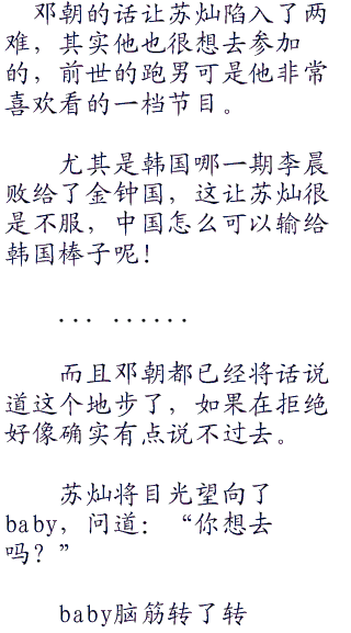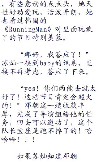 “是紫光从韩国引进过来的一档节目,叫做《RunningMan》,中文名称叫做《奔跑吧,兄弟》,这是一档在韩国很火的节目,不知道你们有没有看到?”邓朝问道。