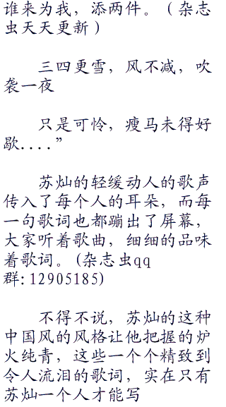 箫声持续了好一阵,不过大家却都听得有些如痴如醉,这么美的前奏,以箫声来演绎,倒是令大家心旷神怡。