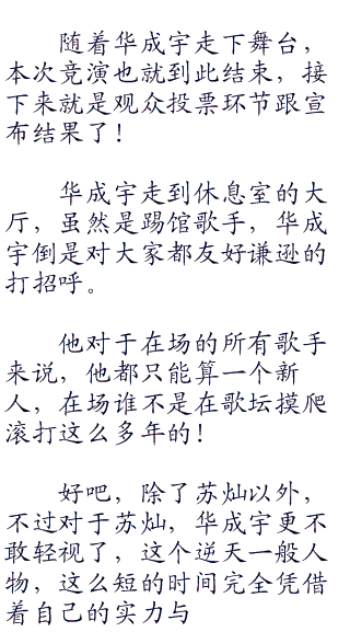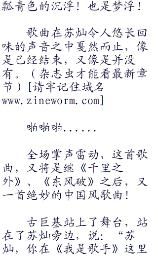 “接下来,有请最后一位竞演歌手苏灿,为大家带来一首歌曲《千百度》!”古句基说完就走下了舞台,舞台交给了苏灿。