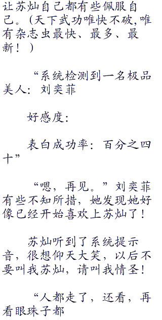 刘奕菲被苏灿的话弄得心扑通扑通的跳,苏灿离她的耳旁很近,她可以感受到耳朵传来温暖的痒麻的触觉。