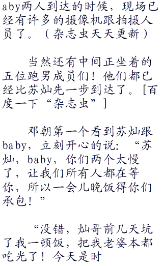 苏灿说:“以后要是宋成宪还来烦你,你可以说我是你男朋友哦,专业挡箭牌三十年,价格实惠,每次五毛!”
