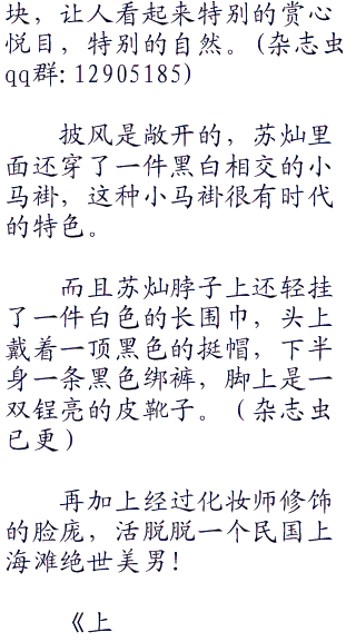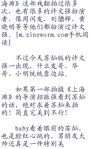 “苏苏,你扮许文强一定特别帅!”baby嘻嘻笑着朝苏灿说道。