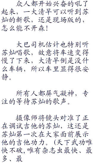 (无心温馨提示,夏天书友们在坐大巴汽车的时候,一定要尽量选择靠前面的位置,因为后排不但会很热,而且前排乘客的不好的味道也会传入后排,有时候巴士上有小孩大小便的时候,那酸爽简直受不了!)