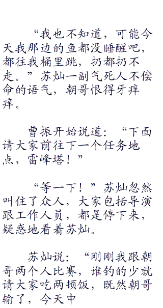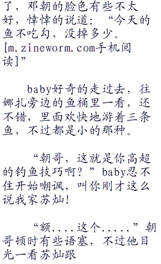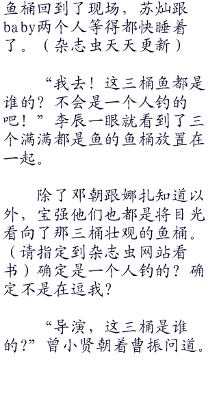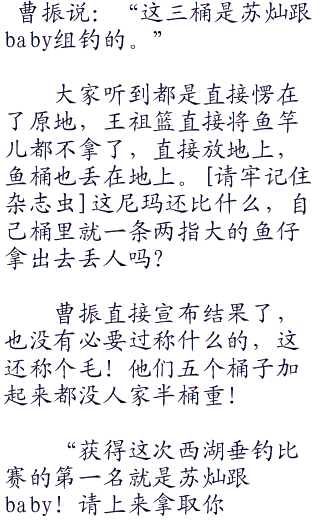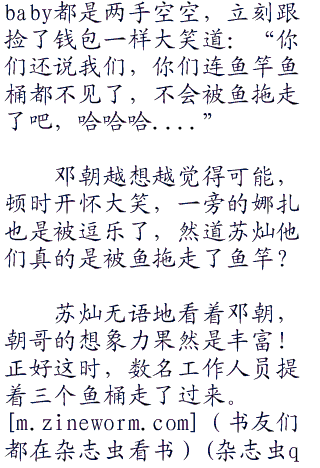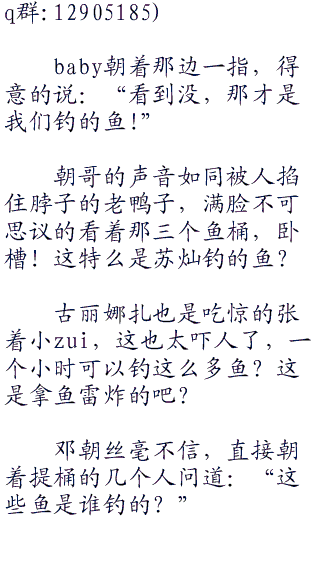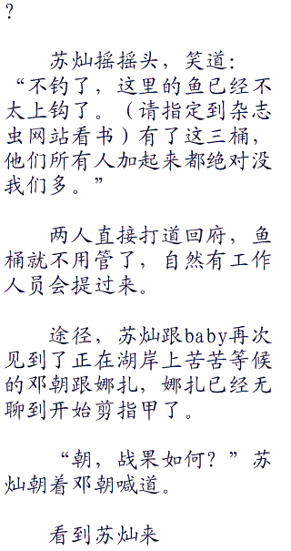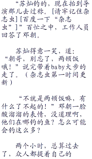 “苏苏,你不钓了吗?”baby好奇的问道,今天跟着苏灿钓鱼实在太爽了,难道这里真的是有很多鱼吗