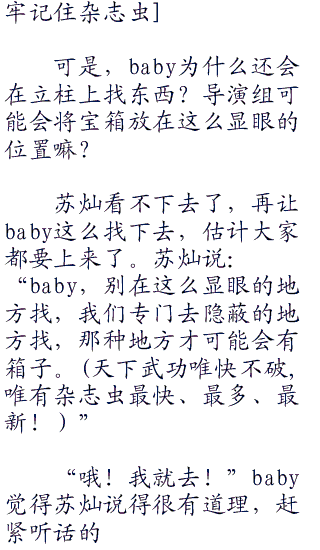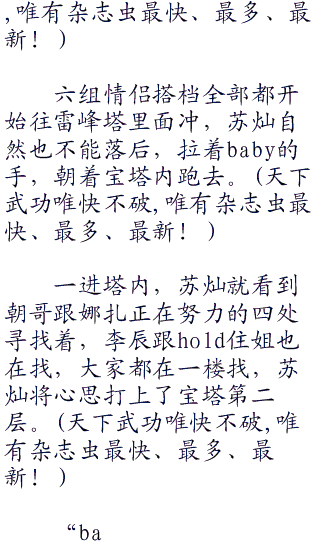 “雷峰塔的第七层里,放置着你们要的线索,想要得到线索,就要完成任务,雷峰塔的第一层跟第二层一共放置了七个任务宝箱,找到宝箱,完成任务,最先完成的前三组才将会机会进入第七层获取你们的线索!”