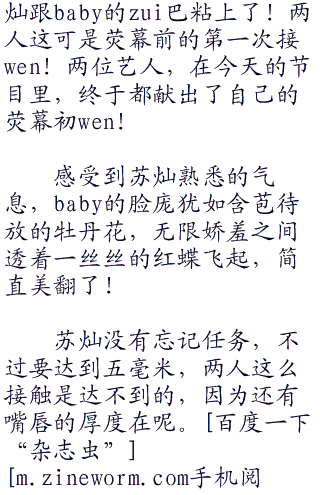 baby有些脸红的点头,虽然跟苏灿是公开的情侣,但在镜头下面两人这么亲密的话她还是很羞涩的。