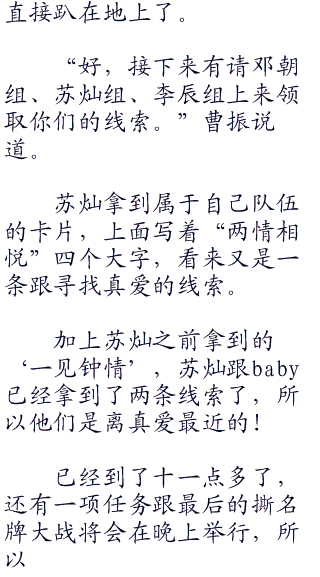 苏灿无语,问道:“朝哥,你们两个刚刚的任务是什么?”