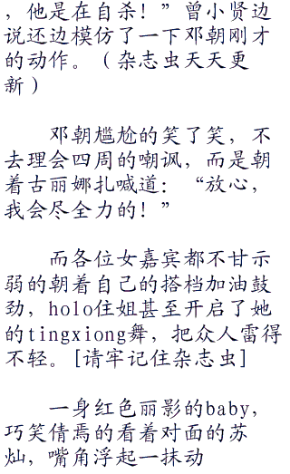 今天每组搭档都穿着不同颜色的衣服,像苏灿跟baby就是穿着红色的衣服,两人那么一站,倒是显得分外的活力四射。