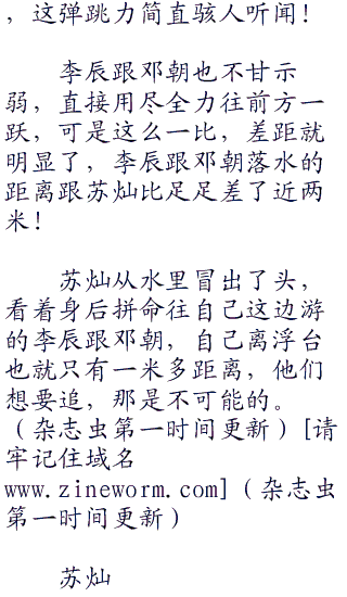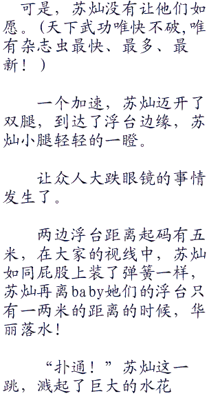 苏灿目测了自己离baby那边的浮台距离,开始退后了几步,准备冲刺。