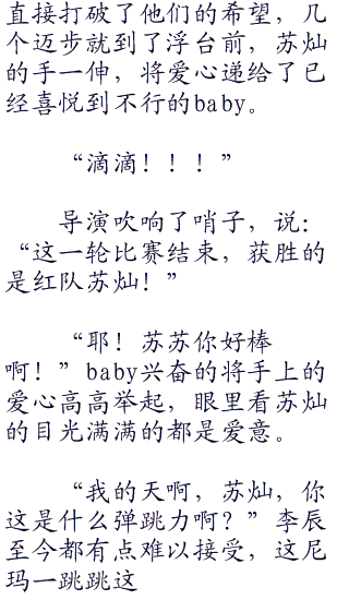当苏灿踏上了浮台的时候,跑得最快的李辰离他还有两三米的距离,苏灿直接快速抱起红心。
