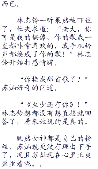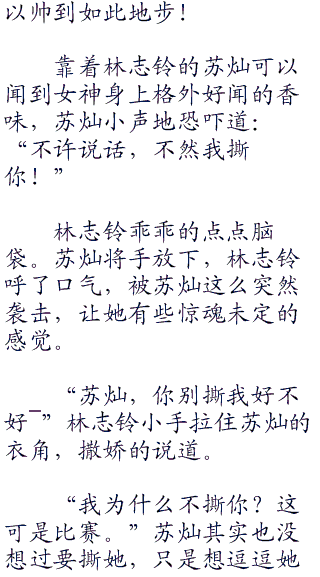 曹振回答道:“你们的特权就是,如果baby你受到危险,只要你说出‘时间静止’,那么baby你将有五秒钟的逃跑时间,这个特权只限于公主,而且只有一次机会。”
