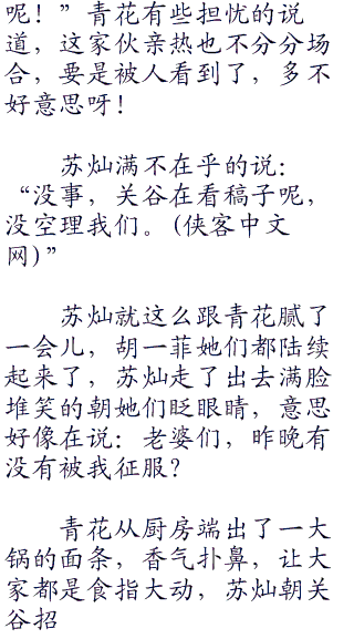 青花美丽苗条的身影正在煮着面条,从里面飘出来的香味让苏灿肚子都有些咕咕叫。
