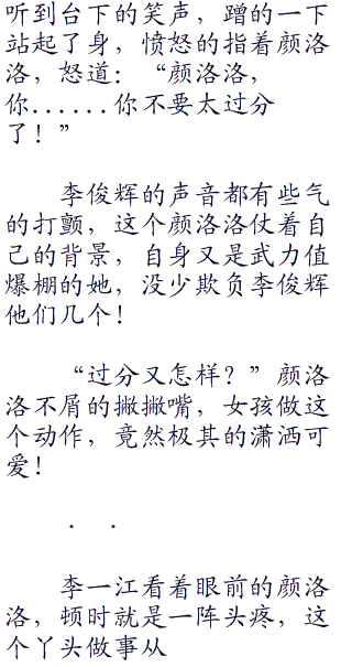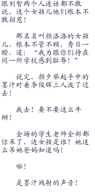 江涛三人被这么当众挨骂顿时脸色一阵铁青,当他们将愤怒的目光看向台下的那名女孩的时候,立刻如同老鼠见了猫一般的缩回了脑袋。