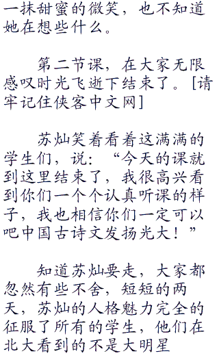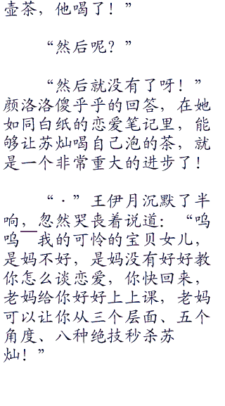 听到苏灿的夸赞,颜洛洛心里不由得一阵欢喜,她从未谈过恋爱,也不知道应该怎么去追男孩子,她知道今天苏灿要讲课可能会口渴,所以大清早的起来开始泡茶!