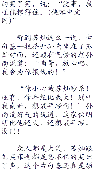 “你这是偷奸耍滑,苏灿跟孙南大哥比过了,手肯定没力了,你这个时候来比,太奸诈了!”张靓影揭穿了古句基的小心思,也正如张靓影所说的那样,古句基的小算盘打得贼响。