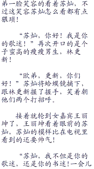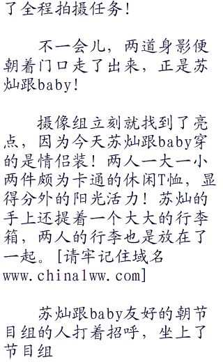 当苏灿跟baby两个人走出房间的时候,发现大家都已经回去了,连刘奕菲也是连招呼都没打便走掉了,看来太害羞了。