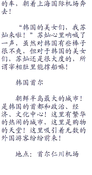 一回到家,苏灿跟baby便被紫光告知,明天将要出发前往韩国录制第二期奔跑吧兄弟!!!!