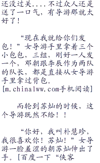 邓朝眼尖,一眼就猜出了女子的身份,说:“你是导游?”