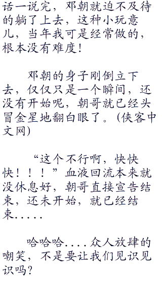 “不懂了吧,这是要倒立的!”邓朝一脸傲娇的表情说道:“我来示范给你们见识见识!”
