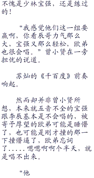 “这个是干嘛的?”baby好奇的指着面前的健身器材问道:“为什么话筒在这里?”