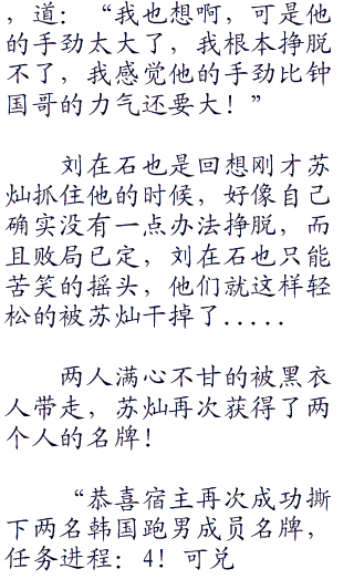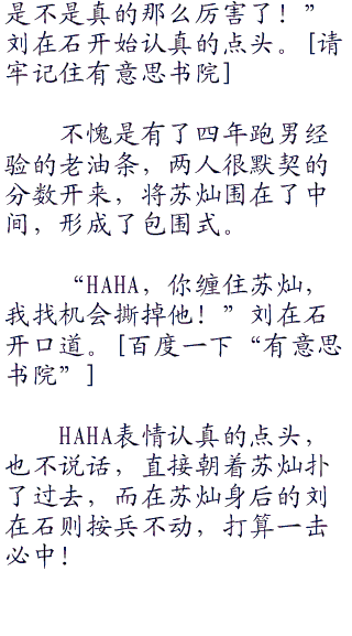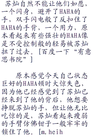 HAHA笑着说:“苏灿,你的自信让我们很是欣赏,不过我希望那不是自满。”