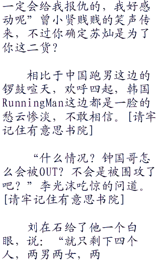 而在两队跑男们的休息室里,原本还在聊着天的众人忽然听见了这道广播声。