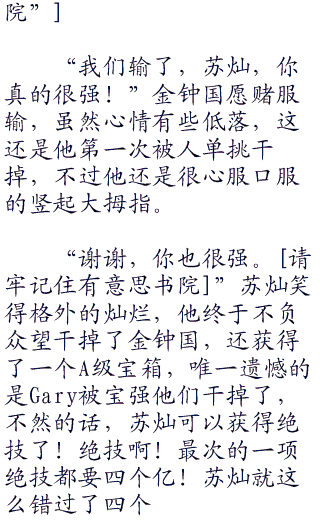 邓朝李辰宝强他们几个人都是无比激动的站了起来,苏灿不负众望,干掉了金钟国!