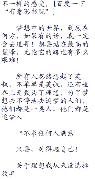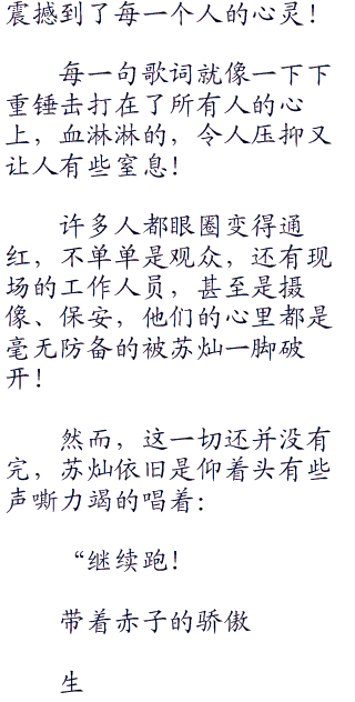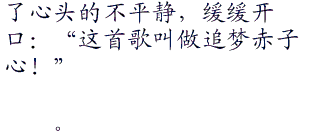 “而我今天要带来的这首歌,是想为英叔一直以来不停的追寻他的梦想而不懈努力的精神致以我的敬意!我也希望,大家可以学习英叔永不言弃的精神,不管前途多么坎坷,为自己的梦,奋斗下去!”
