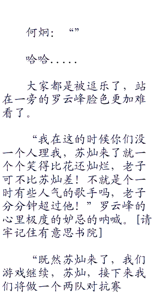 之后的节目录制,几乎就没他罗云峰什么事了,这本来就让罗云峰心里憋着一肚子火,苏灿的到来,更是让他心生妒忌,看着观众们对苏灿如此热烈