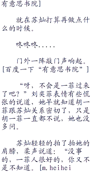 “别!别在这里....”感受到苏灿有进一步的动作,刘奕菲美目迷离的低喃道。