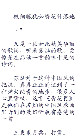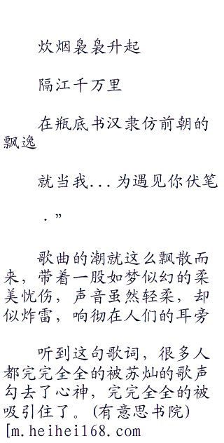 苏灿的歌声像是一曲能够断人肝肠的烈酒,可以流进人的心里,看似平淡的液体里却饱含了炙热的温度,这种温度,足可以烧灼心脏,刻印骨髓