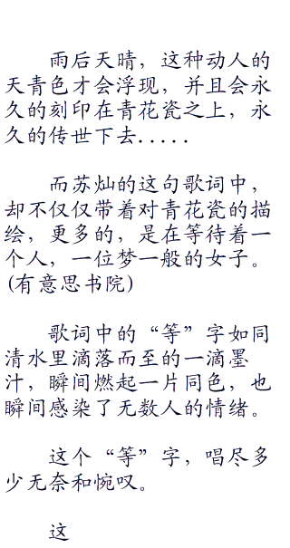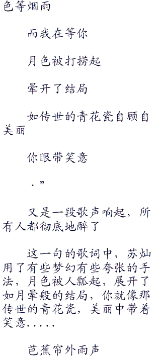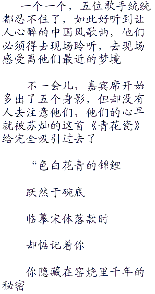 而这首歌曲最为精髓的部分随着大家细细的品味,终于到来,苏灿的声音开始变得有些哀婉又情殇......