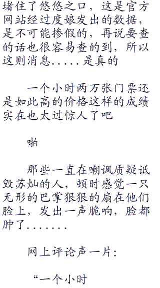 “苏灿上海个人演唱会:门票:0张,已售空。”