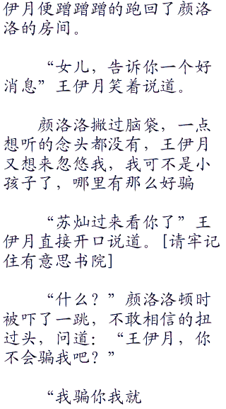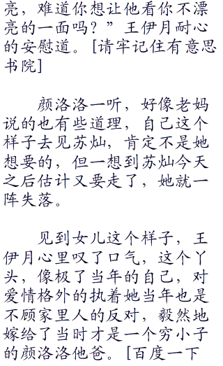 “可是他好不容易才来一次学校,下一次要再见他都不知道什么时候去了......”颜洛洛很失落的说,她又何尝不知道自己现在这身体不宜外出呢。