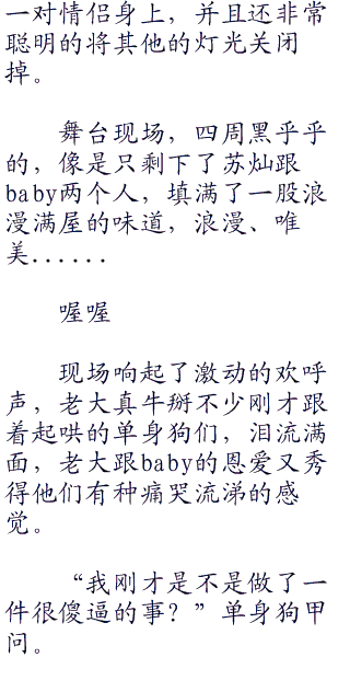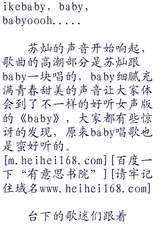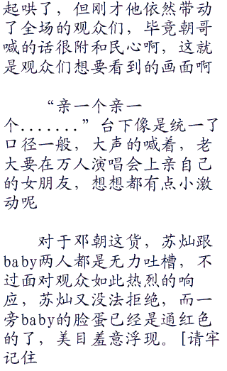 舞台上,被苏灿牵着小手的baby微笑地望着台下数万人的眼光,俏脸红红的,有股说不出的迷人味道。