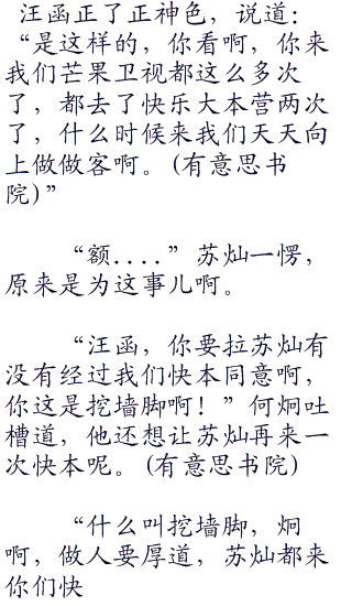 “苏灿,函哥跟你商量个事儿呗?”汪函忽然朝苏灿很严肃的说道。